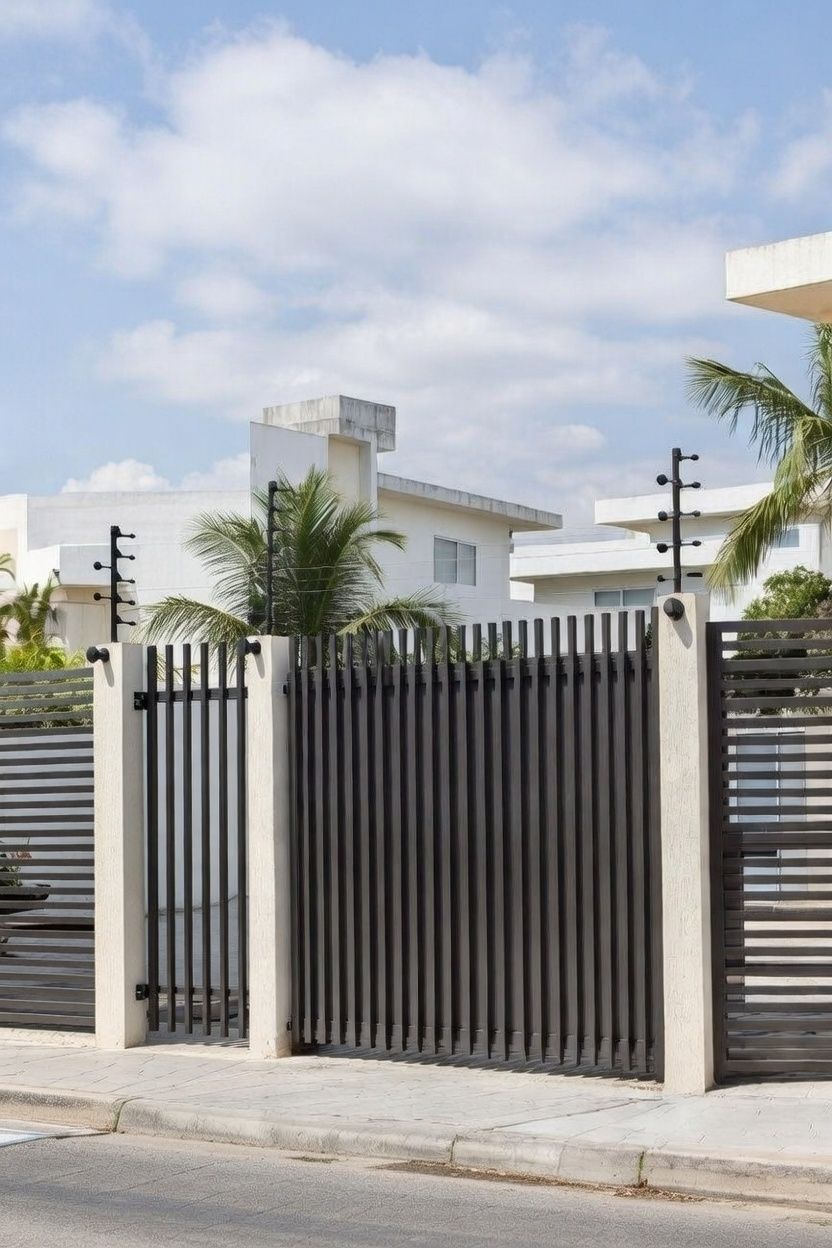 Verjas modernas: tienen líneas simples y rectas, diseño minimalista, y a menudo usan acero, aluminio o combinaciones de barrote con lámina de acero.