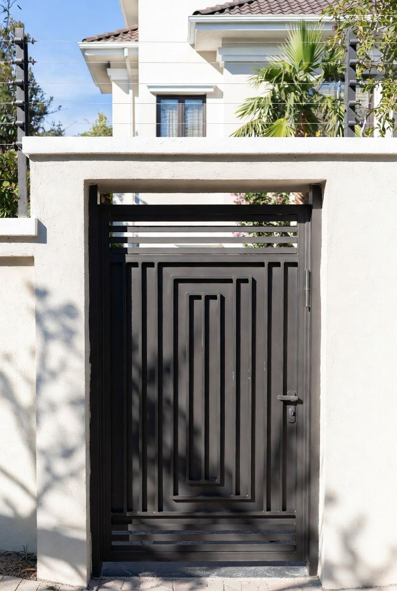 La diferencia es que esta, en lugar de usar las típicas varillas finas de hierro, utiliza barras, láminas o combinaciones de estas en materiales de aluminio o de acero que permiten conseguir diseños geométricos modernos y que incluso las hacen más resistentes y menos oxidables. Las puertas modernas nos permiten tener una gran variedad de opciones a elegir con respecto al diseño; casi siempre es un sinónimo de minimalismo, pero también de resistencia y practicidad.
